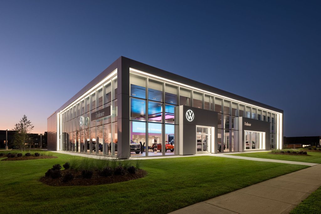 The new Oxford Dodge Chrysler dealership provides a larger showroom, more service bays, a dedicated Collision Centre, and a standalone Mobility Centre to better serve the needs of their customers and to proudly showcase their vehicles on Hyde Park Road. These functions are housed in three separate buildings designed to attract visitors through their transparency and to improve visitors experience through better flow, circulation and site lines throughout.
